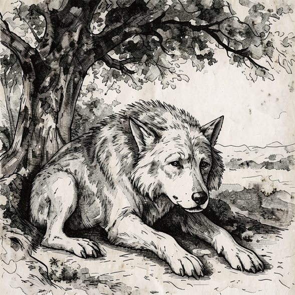 Later, that evening, Rialta peeked shyly from the cave. Sadness weaved around her. It was then that Rialta learned about her mother’s passing. Many of the wolves had died in the fire. She was so overwhelmed by grief that she gave out a mighty howl which cracked the night air.