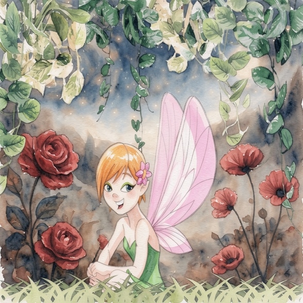 Blobs of sweat popped on Petalkin’s palms, she felt her shoulders lock, her breath catching as her throat constricted.  Blackness came upon her, and she tumbled to the ground.  She awoke to the rosy-cheeked Fairy Layla peering down at her. She was the type of fairy who was comforting on a sad day.